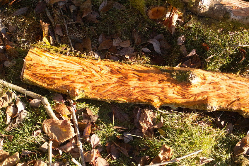 • A really interesting reply Andrew, thanks. Lots of fascinating stuff here .We’ve also seen animals – presumably mice, strip bark off logs in our wood store, ( again apparently selectively) and had big issues with squirrels. We mentioned it to a fellow gardener, who reckoned that around May time frustrated male grey squirrels took to debarking her maple trees… we had the same thing happen to many of our trees one year, in early May, so way after any shortage of food time. I suppose they could have been after rising sap, but a little too late for that. And the debarking was high off the ground, on trees maybe 10 years old. Mainly maple trees (Acers) of one sort or another. Most will shoot again from the base, but many years growth has been killed in a spree that only lasted 2 days ( or nights). Short of taking out, by trapping, grey squirrels in advance of this time of the year, I don’t know what you can do to prevent it …other than not plant maples of course! Field maples were some of the trees really badly trashed – I might include a few photos next time to demonstrate the degree of damage. We thought it was just a manic one off, until this other gardener explained she’d seen it several times.