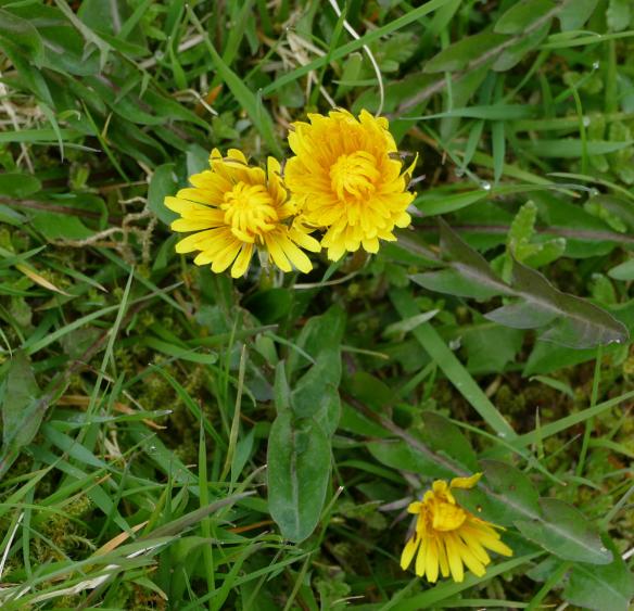 The rattle seedlings are visible now (early April, above) and it looks like there will be a lot again this year. So if anyone would like to come round in late summer to collect some (it’s easy to shake it out of the seed heads) to sow on their own fields, we can spare it. Let me know nearer the time (andrew.martin26@btopenworld.com).