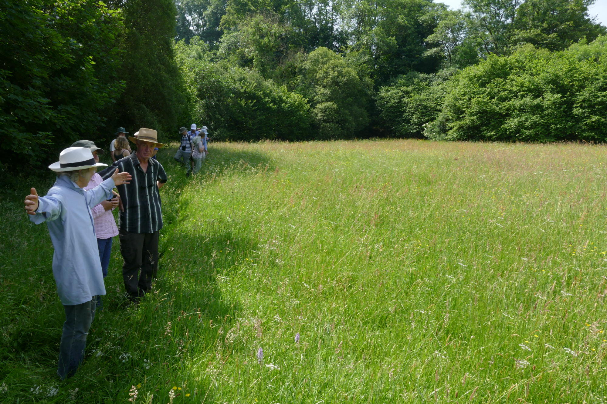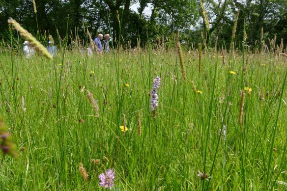 The final fields had the most orchids in them, in various shades of pink and white, and I took this rather special photo of Helen and Kath, with Richard sheltering under umbrellas in a Carmarthenshire meadow at noon, on the longest day – not because of rain, but to shade themselves from the sweltering heat. How long before this happens again?