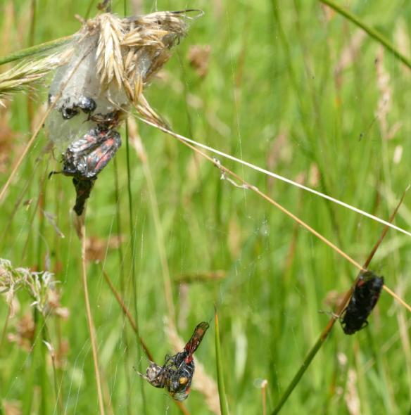 One spider clearly found all these moths easy to catch, and was building a considerable larder filled with just Burnet moths…