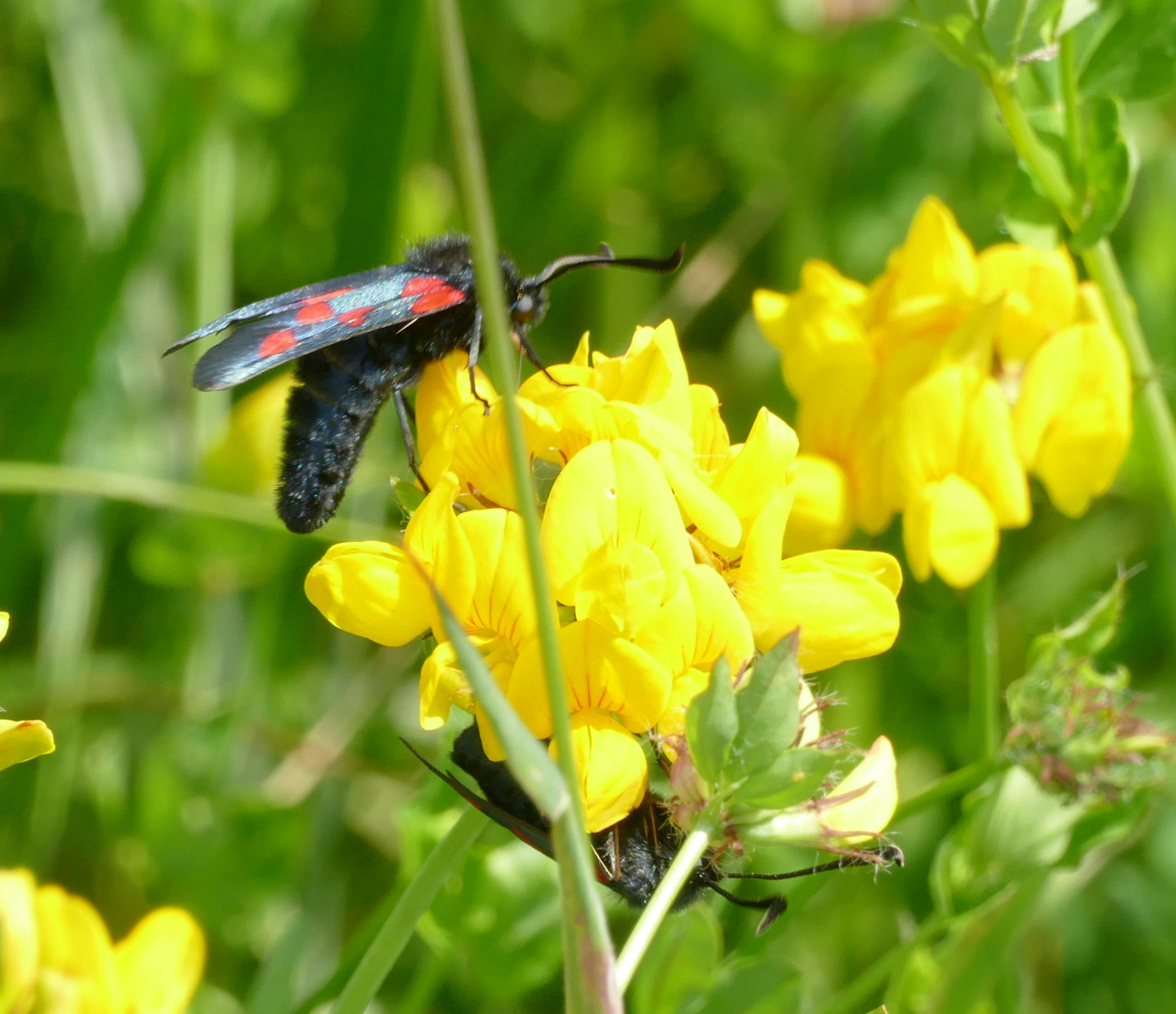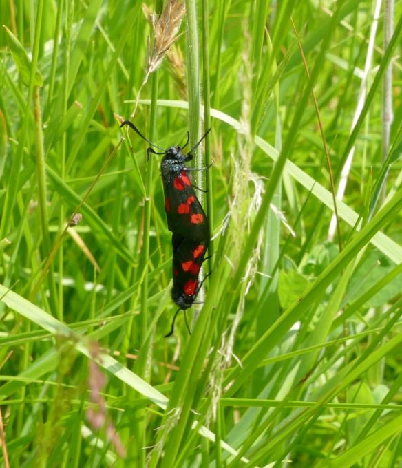 In particular the number of striking Five-Spot (or Narrow-bordered Five-Spot – they are very difficult to tell apart) Burnet Moths throughout all the first 4 meadows where there were significant quantities of Greater Birdsfoot Trefoil, the moth’s larval food plant…