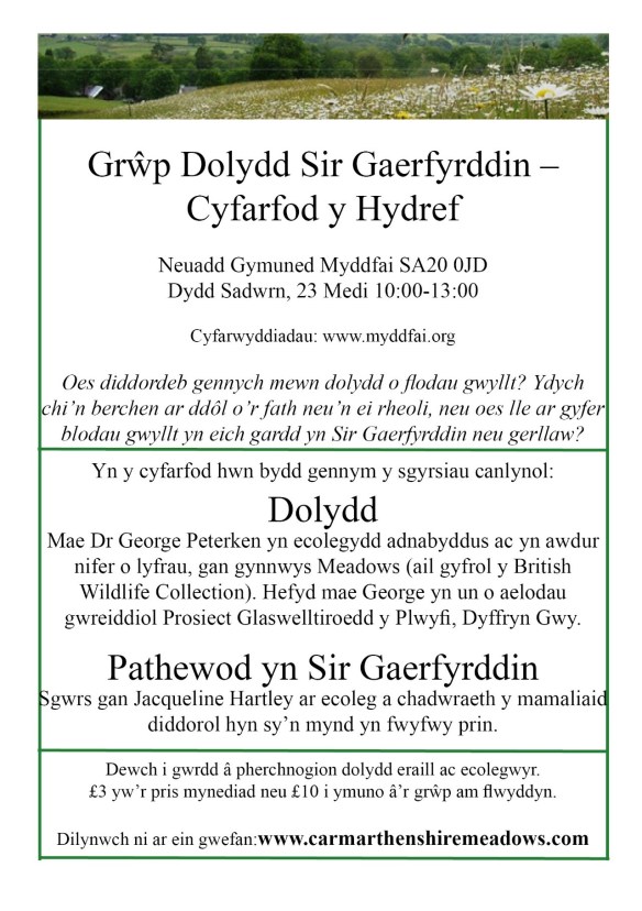 Final details for the autumnal meeting at Myddfai are given below. We hope many members will be able to come along and join us on Saturday September 23rd 2017, at Myddfai from 10.00 am to 1 pm .