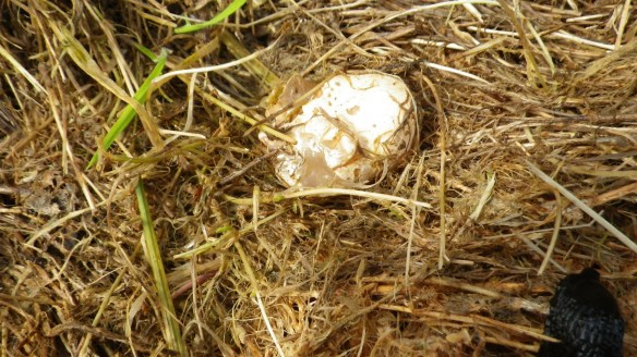 But the interesting thing is that the Fairy fingers haven’t appeared in our meadows, but rather in our magic multicultural terrace garden. Visitors will know that this part of the garden used to have a pond in it, fifty years ago, to take the water run off from a water wheel sited against the North gable wall. When we acquired Gelli, it had already been filled in, for perhaps 30 years, and was rough grazed pasture. This was then covered by us with smashed concrete and dug out shale from the conversion of the old milking parlour, about 20 years ago. So has the fungus colonised the current, almost grass free, forb based meadow now on this site? Or was it living in the previous rough pasture, and it’s taken all these years to fight its way to the surface?
