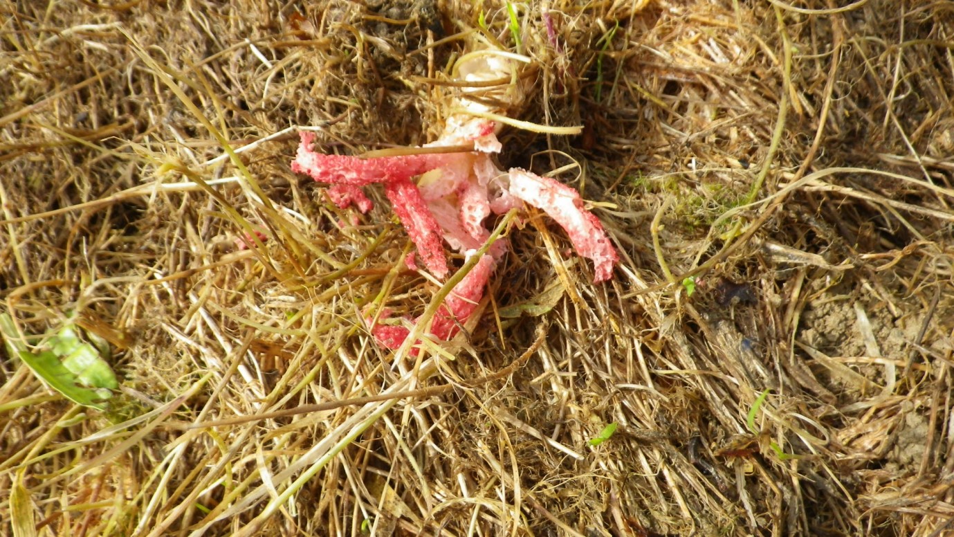 So I ‘phoned round all the organisations I could think of – Botanic Gardens, Plantlife, etc. and within a very few days my find was officially recorded as the first ever Clathrus archeri site in Wales.