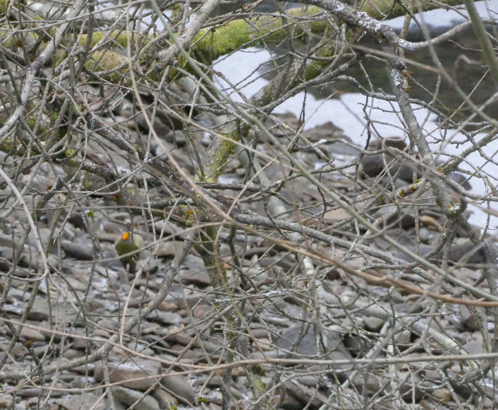 Whilst in this bit of marginal land, the flamed flash of a Goldcrest’s crown caught my eye …