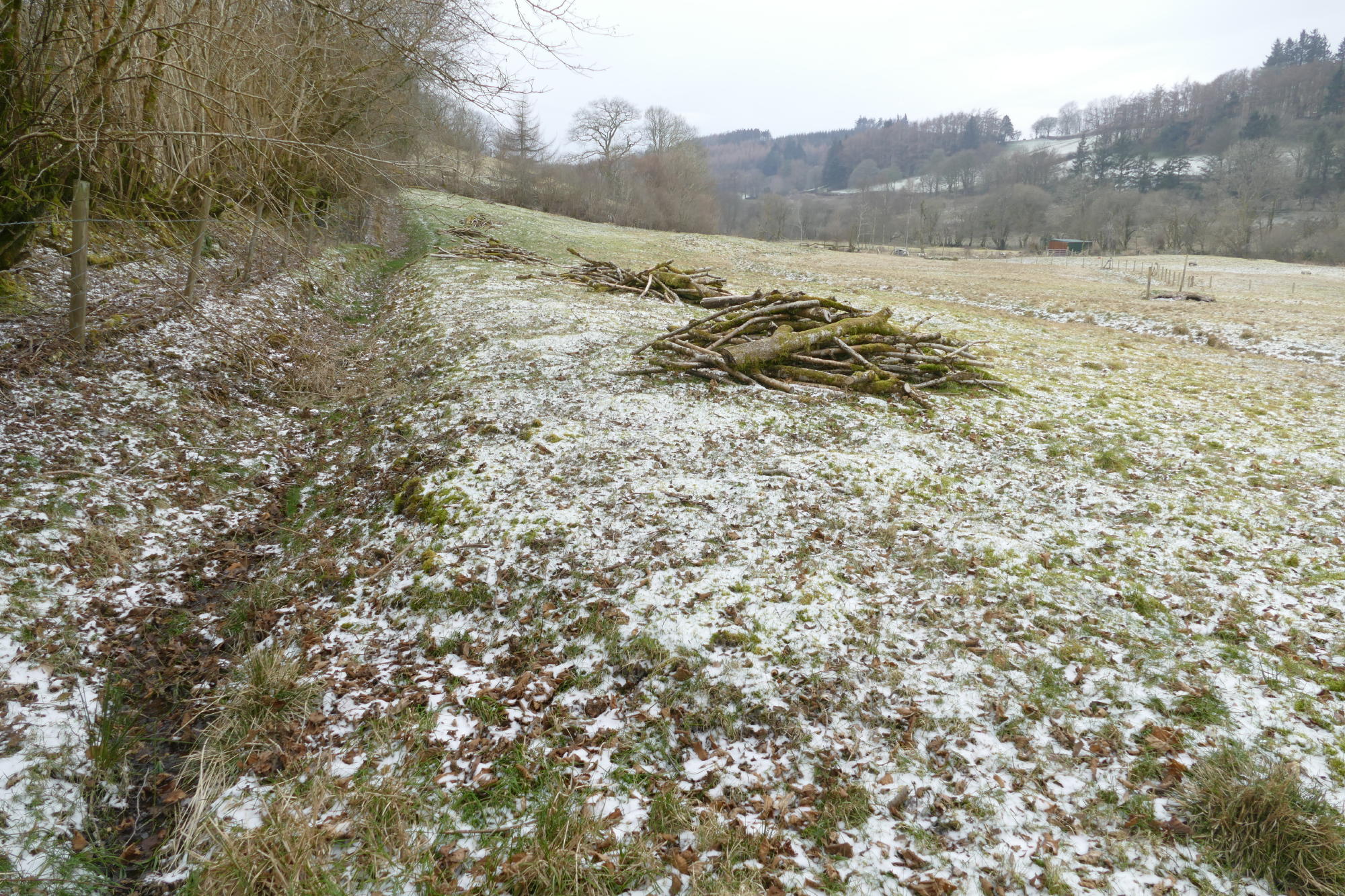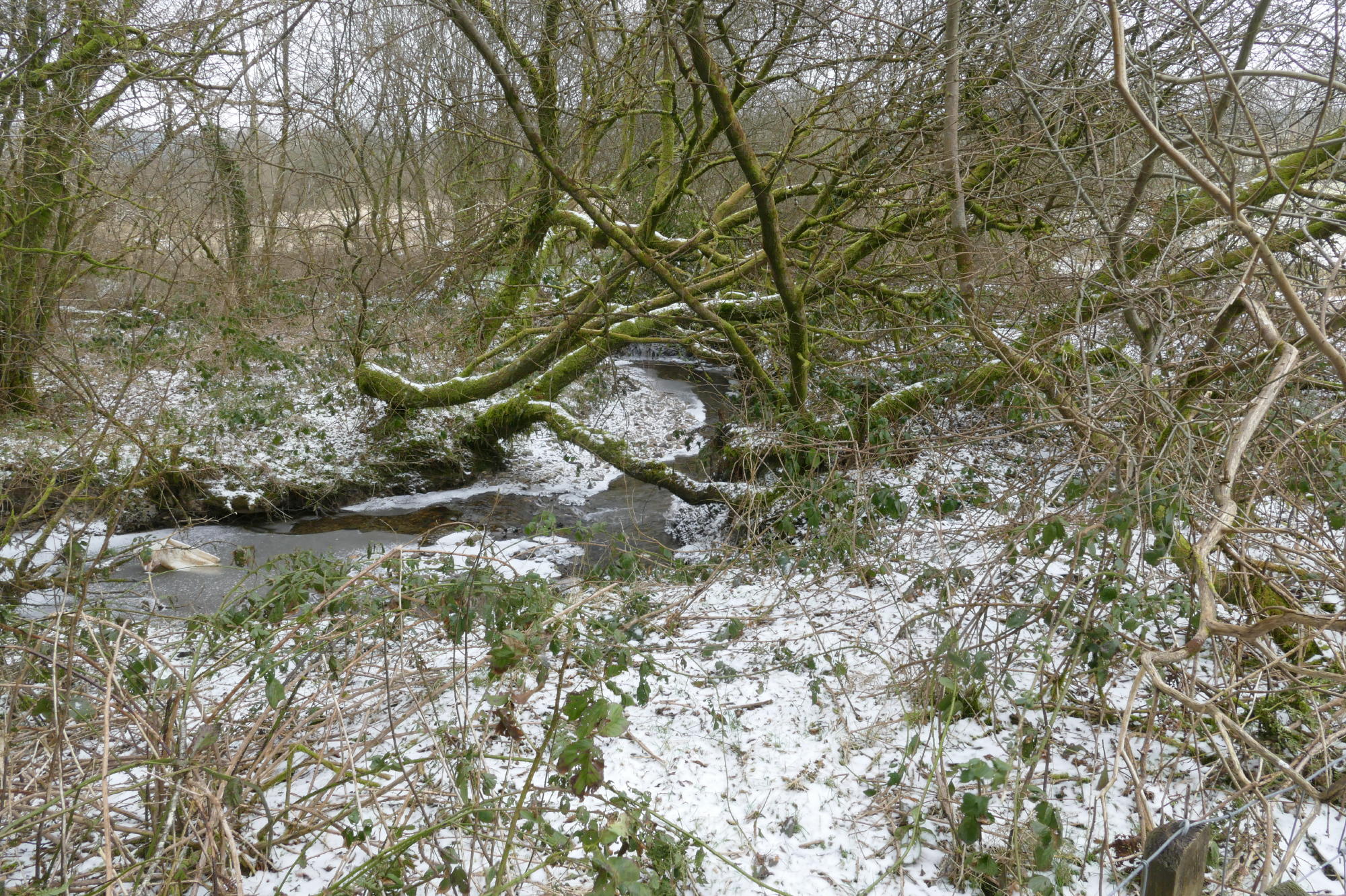 Relocating the camera over our stream as it heads from our land through scrubby wet woodland…