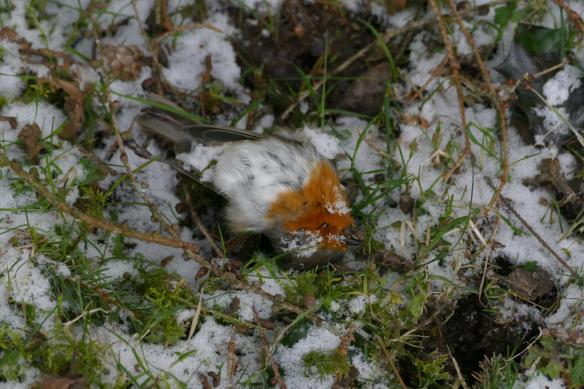 amazing that this tiny bird can survive in such conditions, though nearby a robin was less fortunate…