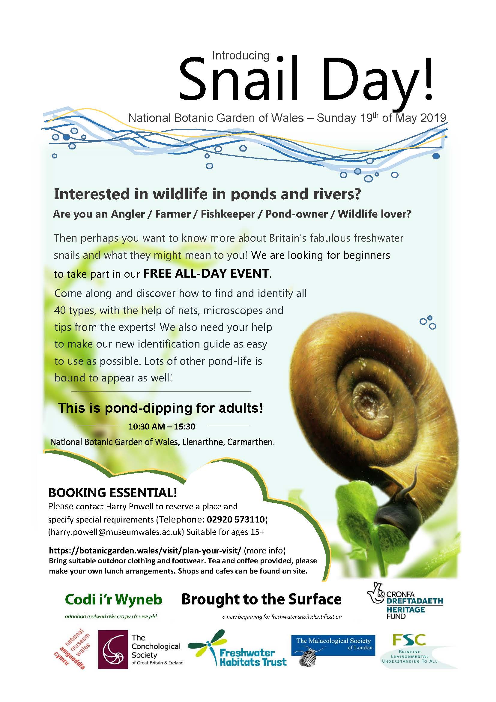 An event – Sunday 19 May 2019 – Freshwater snails! Gallery Posted on Apr 12, 2019 by earlypurpleorchid Share this: Click to share on X (Opens in new window) X Click to share on Facebook (Opens in new window) Facebook Like Loading... Related