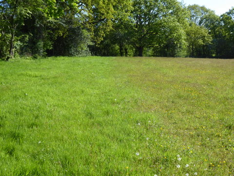 East of the treeline. RH half of picture – Anthoxanthum in full flower. LH half – grass not in flower.