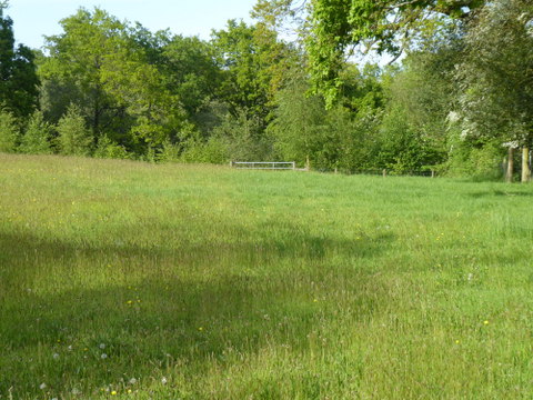 Our two fields (which are managed as meadows) are adjacent but separated by a treeline. The treeline comprises 6 large oaks and some hawthorn, willow, blackthorn, holly and hazel with bramble undergrowth. The canopy of the oaks is just about continuous. The treeline runs approximately north to south.