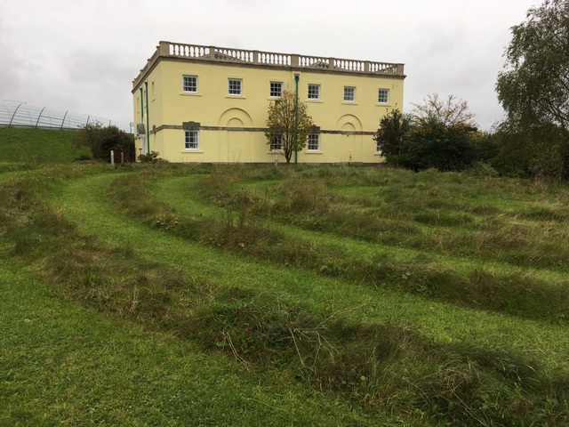 “On the fungus walk last week at the NBGW, we all walked round the main entrance of Principality House. One of the lawns outside it has been mown in a way I’ve not seen before, with concentric rings of short mown lawn alternating with un-mown rings of longer grass containing all sorts of meadow plants.