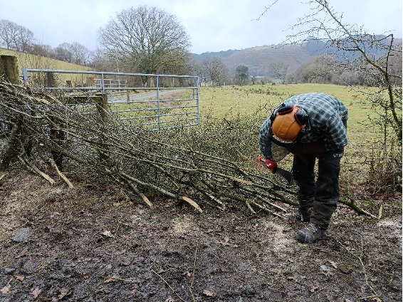 Ten Carmarthenshire Meadows Group members took part in hedge laying training led by Malcolm Edwards on Saturday 4th of February 2023 at Blaenig Uchaf, Talley.