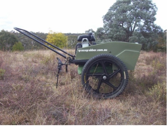 The Grass Grabber is a machine with bicycle type wheels made in Australia, and it’s actually intended to collect grass seeds. Below are some photographs which show the wheels etc more clearly and kindly provided by the manufacturer: