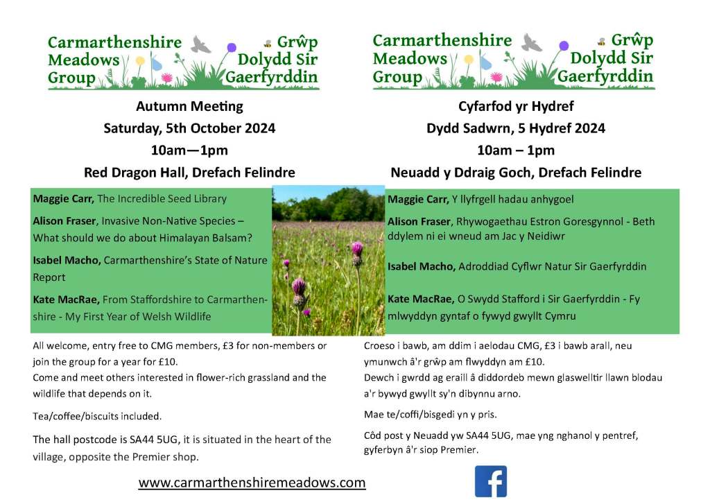 Reminder of the Autumn meeting – 5 October – Drefach Felindre Gallery Posted on Sep 16, 2024 by earlypurpleorchid Below is the poster – and (hopefully) a link so you can download, print off and tell others! CMG poster Autumn 24 combined finalDownload Share this: Click to share on X (Opens in new window) X Click to share on Facebook (Opens in new window) Facebook Like Loading... Related